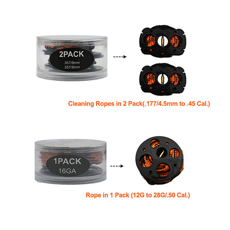 ● बन्दुक सफा गर्ने डोरीहरू कडा सिलाई छन्, सजिलै भाँचिने छैनन्; निर्मित ब्रश संग सिथेटिक फाइबर डोरी छिट्टै र प्रभावकारी बोर सफा गर्न सक्नुहुन्छ। प्रत्येक अन्तिम नटमा क्यालिबर नम्बर लेजर प्रिन्ट गरिएको छ। डोरीहरू पुन: प्रयोगको लागि धुने योग्य छन्।