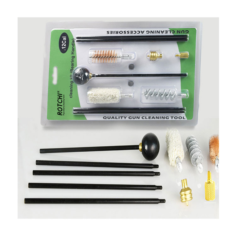 शटगनको लागि व्यावसायिक बन्दुक सफा गर्ने किट। यसको बल ह्यान्डलले तपाईंलाई हातमा आरामदायी ह्यान्डल प्रदान गर्दछ। प्रेसिजन मेशिन रडहरू बलियो, लामो, सीधा र चिल्लो हुन्छन्, जडानहरूमा चरण बिना।