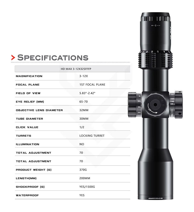 MAX 3-12X32SF FFP HD उच्च लेन्स शिकार मोनोकुलर टेलिस्कोप थोक