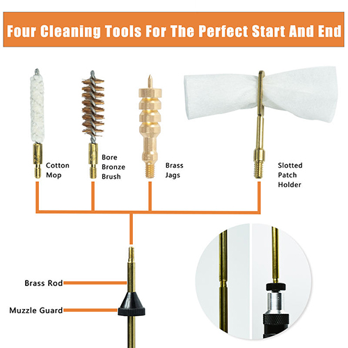 गन क्लिनिङ किट बोर कांस्य ब्रश पारदर्शी सुन्तला बलियो केस