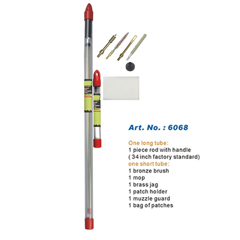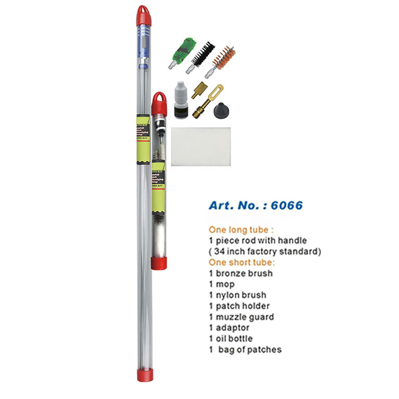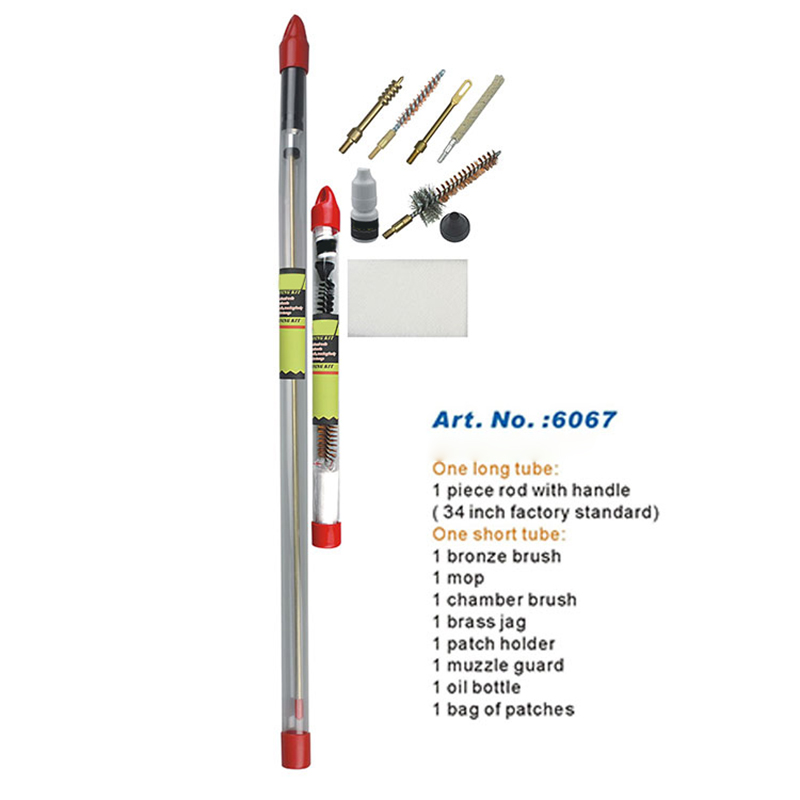 ट्यूब प्याक गरिएको बन्दूक सफाई किटका धेरै फाइदाहरू छन्: घुमाउने एल्युमिनियम ह्यान्डलको साथ एक टुक्रा लामो रड, कुनै काटन छैन; विभिन्न ब्रश र सामान; पोर्टेबल लामो ट्यूब मा प्याक। बन्दुक सफा गर्ने उच्च आवश्यकता भएका प्रयोगकर्ताहरूका लागि, यो राम्रो विकल्प हो।