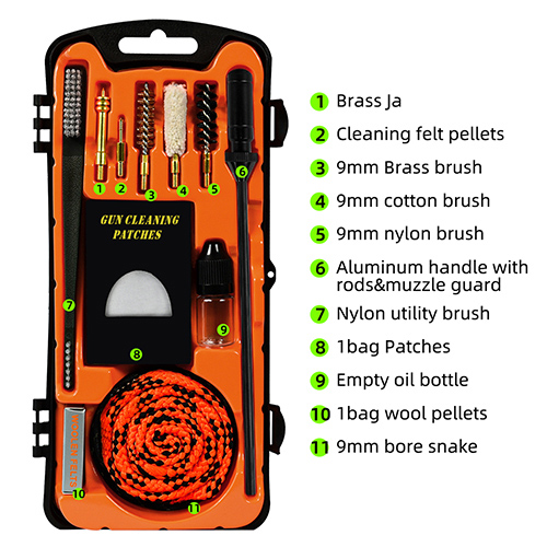 गन क्लिनिङ किट बोर कांस्य ब्रश पारदर्शी सुन्तला बलियो केस
